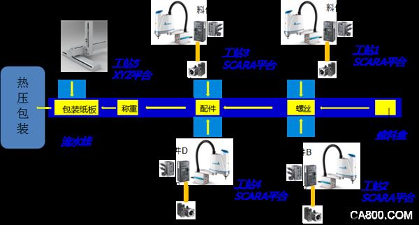 臺達為某大型DIT家具商的螺絲檢測包裝生產(chǎn)線提供SCARA機器人、視覺檢測系統(tǒng)及總線控制架構,取代人力裝盒及檢查,不僅展現(xiàn)出臺達產(chǎn)品在自動分揀-包裝領域的完整解決方案,更確??蛻艏揖呗萁z配件的產(chǎn)品質量,提高螺絲配件的出貨速度。