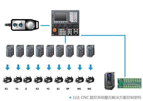 該新型無心磨床的一大特色就是采用了雙機械手自動送料系統,因此,客戶要求磨削加工和自動送料可以同時動作,以求提高效率、縮短加工時間,這樣就需要通過雙通道控制系統來實現,但成本很高。而在臺達的整合解決方案中,ASDA-A2系列伺服驅動器本身具有強大的PR功能(內部位置編程模式),可以提供高達64點內部地址,可規(guī)劃多樣多點連續(xù)運動路徑,同時可以和上位控制器CNC進行友善便捷地通訊。在此功能模式下,雙機械手可以完成送料的各種動作,操作人員也可以設置機械手的各位置參數。利用A2系列伺服驅動器的PR功能模式,客戶通過單通道控制系統就可以滿足設備運動控制需求,大大降低了系統建構成本?! ?br/>臺達CNC數控系統整合解決方案的優(yōu)勢: