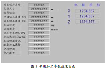 圖3中,用戶可以手動(dòng)設(shè)置鉆孔相關(guān)參數(shù),以符合不同工件的要求。另外此頁(yè)面是按照客戶需求進(jìn)行修改,真正做到為客戶“量體裁衣”地符合客戶的習(xí)慣。