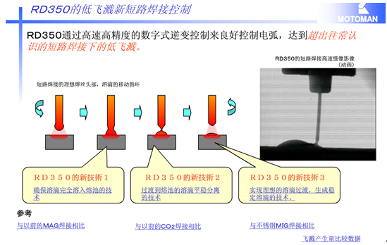 采用超低飛濺全數(shù)字化機(jī)器人專用焊接 電源RD-350。此電源具有如下特點(diǎn):