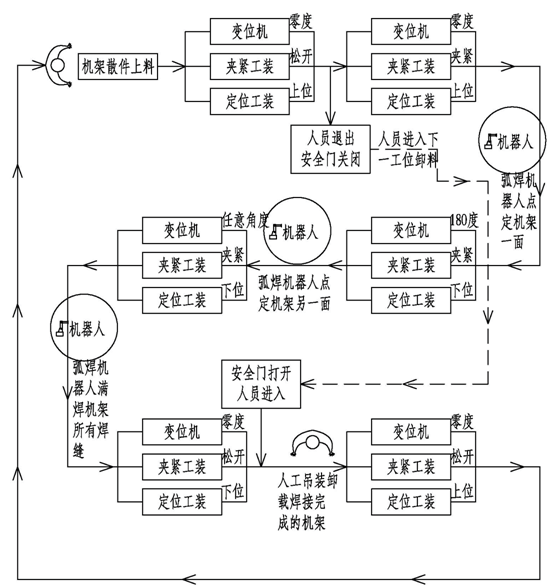 總共分為兩個(gè)獨(dú)立的工位,每個(gè)工位的工藝流程圖相同,具體見下圖。