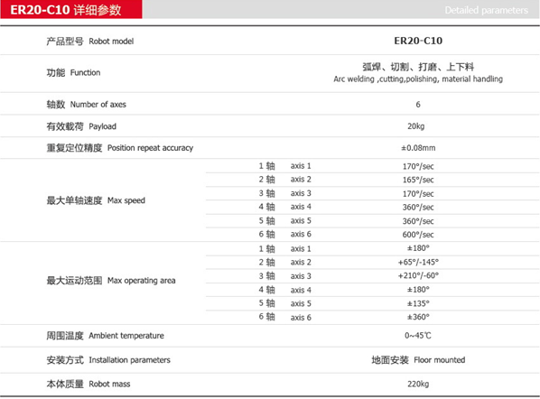 ER20-C10工業(yè)機(jī)器人結(jié)構(gòu)緊湊,運(yùn)動(dòng)速度快,具有較高的重復(fù)定位精度和軌跡跟蹤精度,采用總線架構(gòu),擴(kuò)展應(yīng)用方便,適用于機(jī)床上下料、激光切割、打磨等行業(yè)。