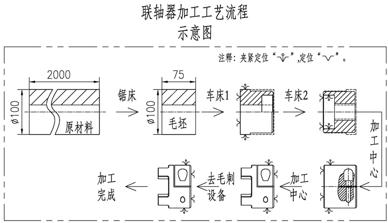 ? 以此聯(lián)軸器從來料-毛坯-加工-去毛刺-裝箱的生產(chǎn)工藝為全自動(dòng)化生產(chǎn)線的完成目標(biāo)。