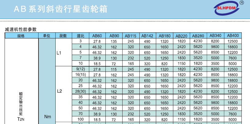 (5) 假設我們選擇:fs=1.3,則TC2= Tr2*1.3=114.6*1.3=149Nm;下一步查詢表格,要求選擇的減速機的額定輸出扭矩大于TC2這樣減速機就能滿足使用要求: