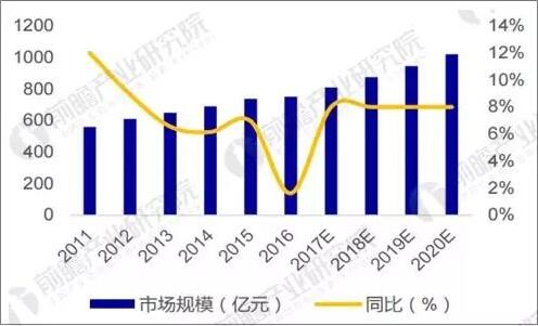 據(jù)前瞻產(chǎn)業(yè)研究院發(fā)布的《低壓電器行業(yè)產(chǎn)銷(xiāo)需求與投資預(yù)測(cè)分析報(bào)告》數(shù)據(jù)顯示,截止2016年底,低壓電器市場(chǎng)規(guī)模達(dá)到750億元。2017年低壓電器市場(chǎng)規(guī)模預(yù)計(jì)在810億元左右,同比增長(zhǎng)8%。低壓電器產(chǎn)品需求受各行業(yè)投資驅(qū)動(dòng),但與固定資產(chǎn)投資相關(guān)。受固定資產(chǎn)投資回暖,及下游發(fā)電、工業(yè)、房地產(chǎn)等市場(chǎng)高速增長(zhǎng)驅(qū)動(dòng),預(yù)計(jì)低壓電器行業(yè)產(chǎn)值在2018-2020年將維持8%左右的增速。