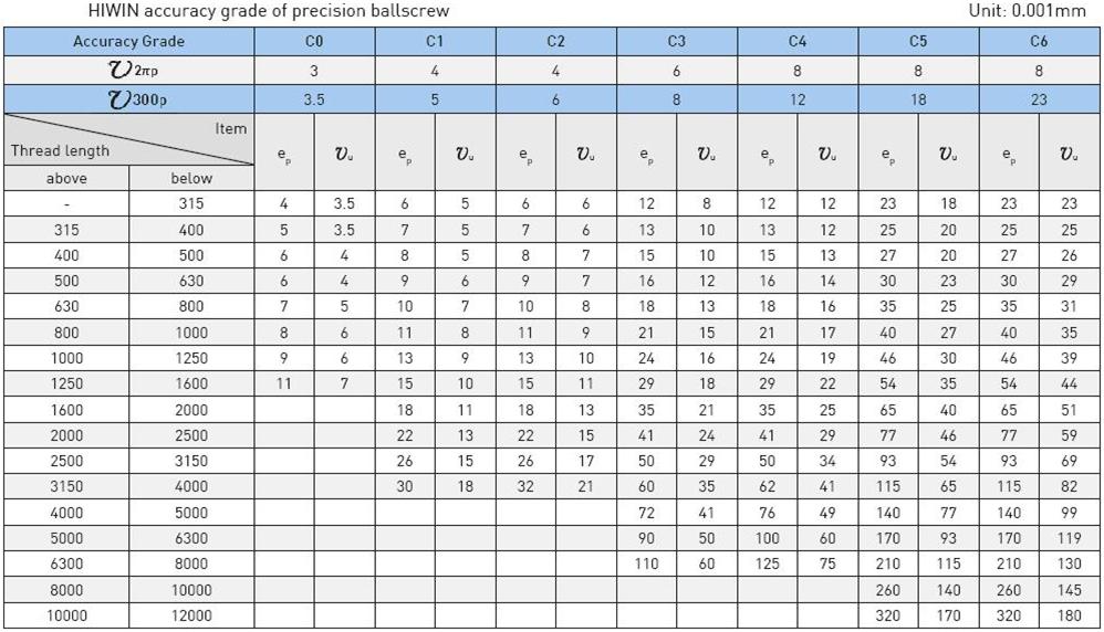 表二 滾珠絲杠國際標(biāo)準(zhǔn)精度等級(jí)(1)