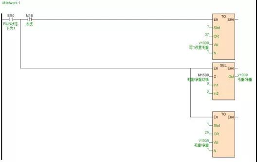 2、程序方面,只要通過(guò)兩條簡(jiǎn)單的FROM和TO指令就可以通過(guò)對(duì)模塊進(jìn)行讀寫操作,再加上模塊本身自帶的豐富的CR號(hào)資源,即可實(shí)現(xiàn)復(fù)雜稱重的要求控制,且編程軟件操作方式簡(jiǎn)單,容易上手。