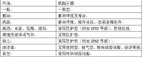 機械手臂是精密機械的一種,選用時必須確認(rèn)使用環(huán)境,一則避免受到環(huán)境的傷害,例如腐蝕性化學(xué)液、木屑、鐵屑等;一則避免對環(huán)境造成傷害,例如產(chǎn)生粉塵、噪音等。針對特殊環(huán)境,各家廠商有不同的對應(yīng)機種,選用時應(yīng)注意。