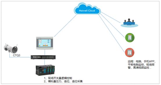 泵房無人值守系統(tǒng)一般應用于供水系統(tǒng)中泵站的遠程監(jiān)控及管理。通過海為云平臺,泵站管理人員可以在供水公司的泵站監(jiān)控中心遠程監(jiān)測站內(nèi)清水池水位或進站壓力、加壓泵組工作狀態(tài)、出站流量、出站壓力等;支持手機APP、云網(wǎng)站遠程對水泵啟動設備手動控制、自動控制、遠程控制加壓泵組的啟停;利用海為云攝像機,還可以圖像監(jiān)視站內(nèi)全景及重要工位,實現(xiàn)泵站無人值守。