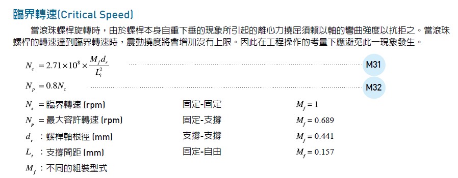 由于絲杠有兩個(gè)端頭,分別采用不同的安裝方式時(shí),請(qǐng)對(duì)絲杠臨界轉(zhuǎn)速的影響系數(shù)不同,請(qǐng)參考上面的公式。